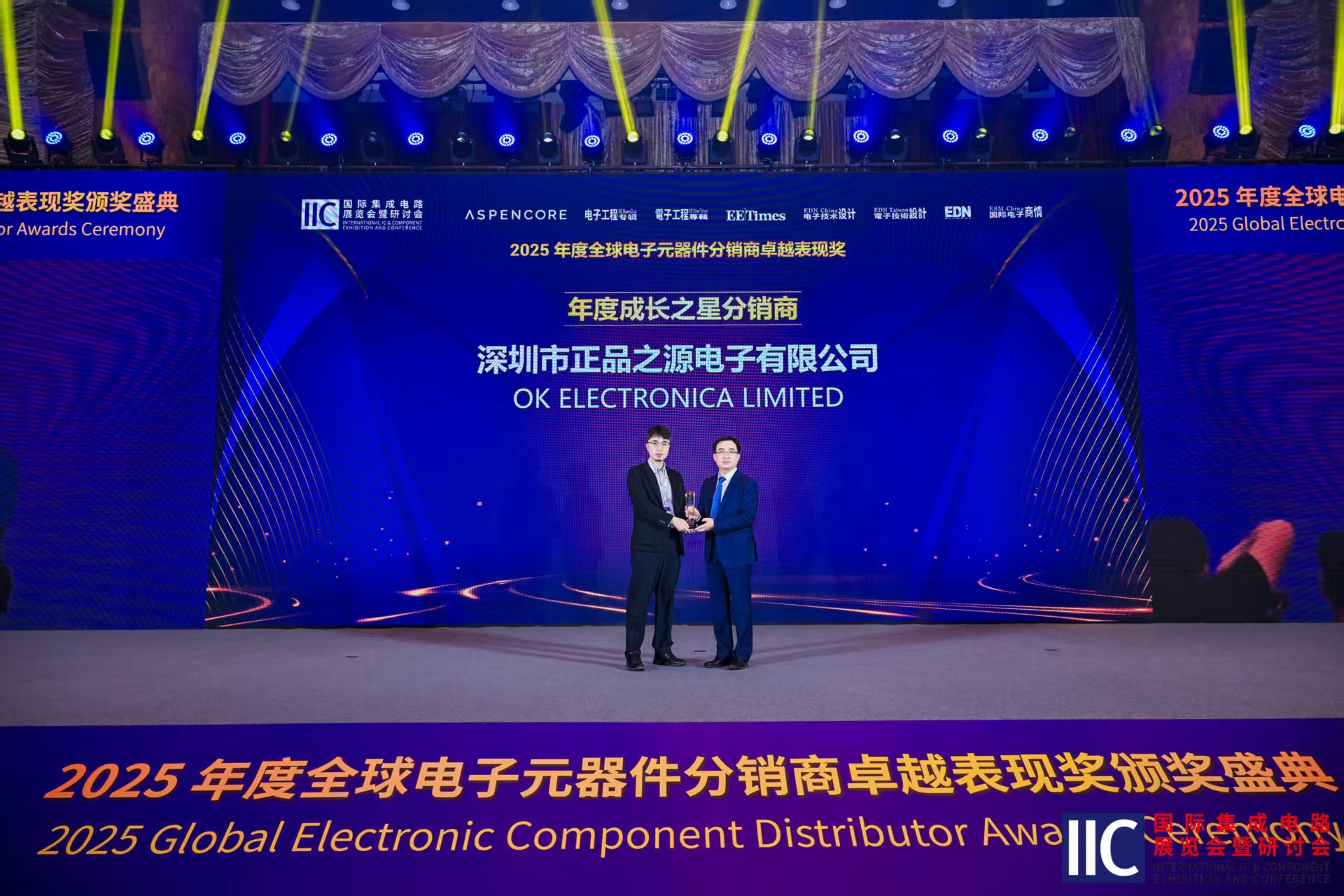 深圳市正品之源电子有限公司凭借深耕领域的深厚积淀与亮眼表现,在这场被誉为 “半导体行业风向标” 的年度盛典,首次斩获“年度成长之星分销商”殊荣!