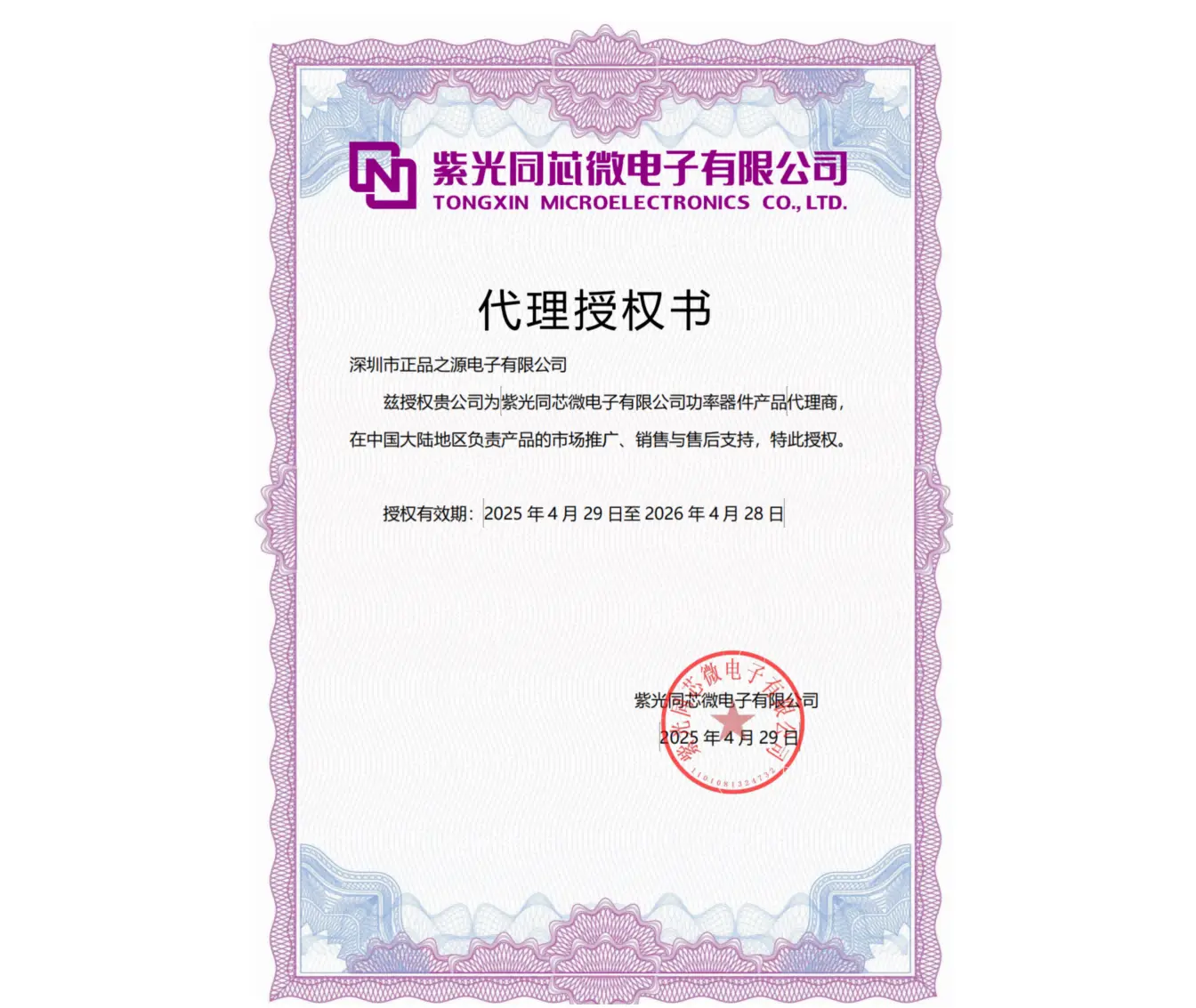 正品之源获得紫光同芯功率器件授权代理